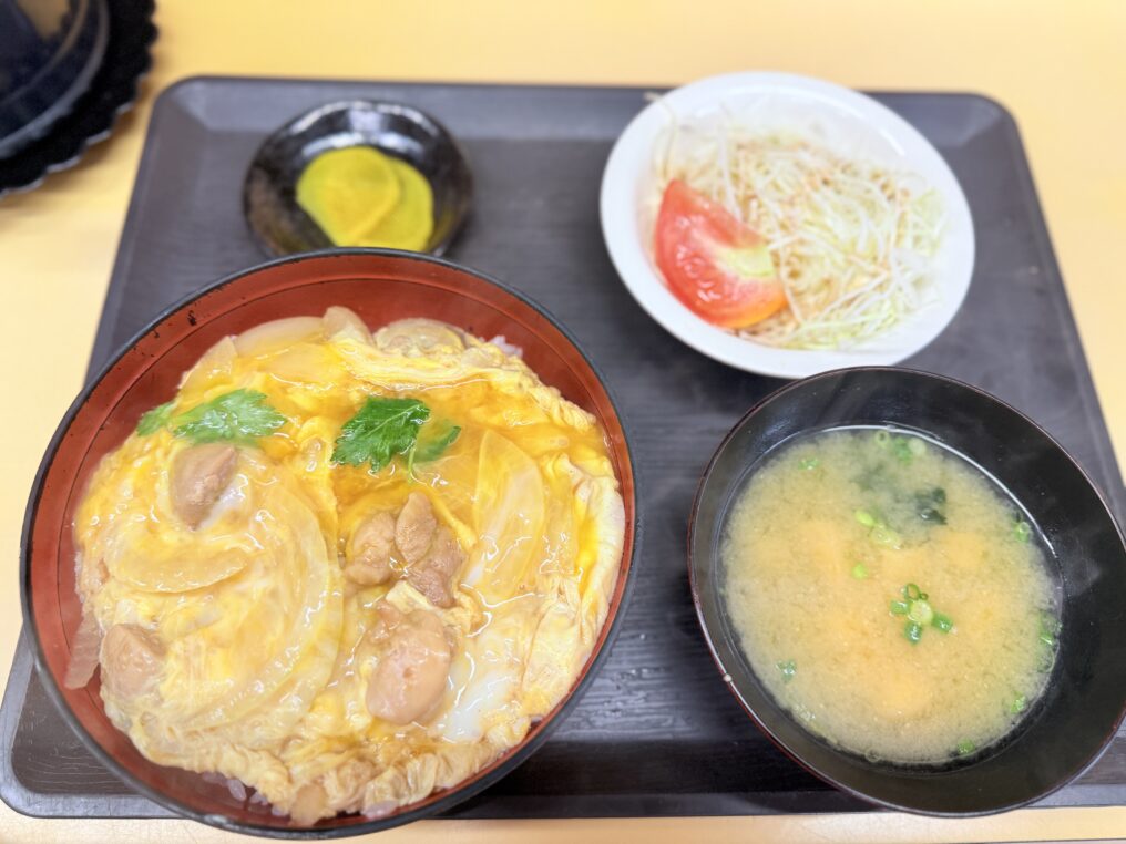 I ordered the Oyakodon (Chicken and Egg Bowl) set meal for just ¥650. The bowl was a delicious mix of tender chicken, fluffy egg, and savory dashi broth over a bed of rice. The set also came with a side of miso soup, a fresh salad, and some pickled vegetables (tsukemono), making it a well-balanced and satisfying meal. The generous portion size and affordable price make it an absolute steal.