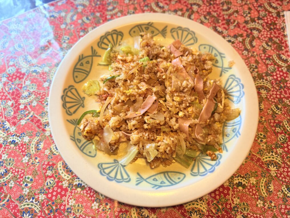 The pilaf, a classic “retro cafe” dish, came with a generous serving of rice stir-fried with colorful vegetables, bits of ham, and a touch of butter for a rich flavor.